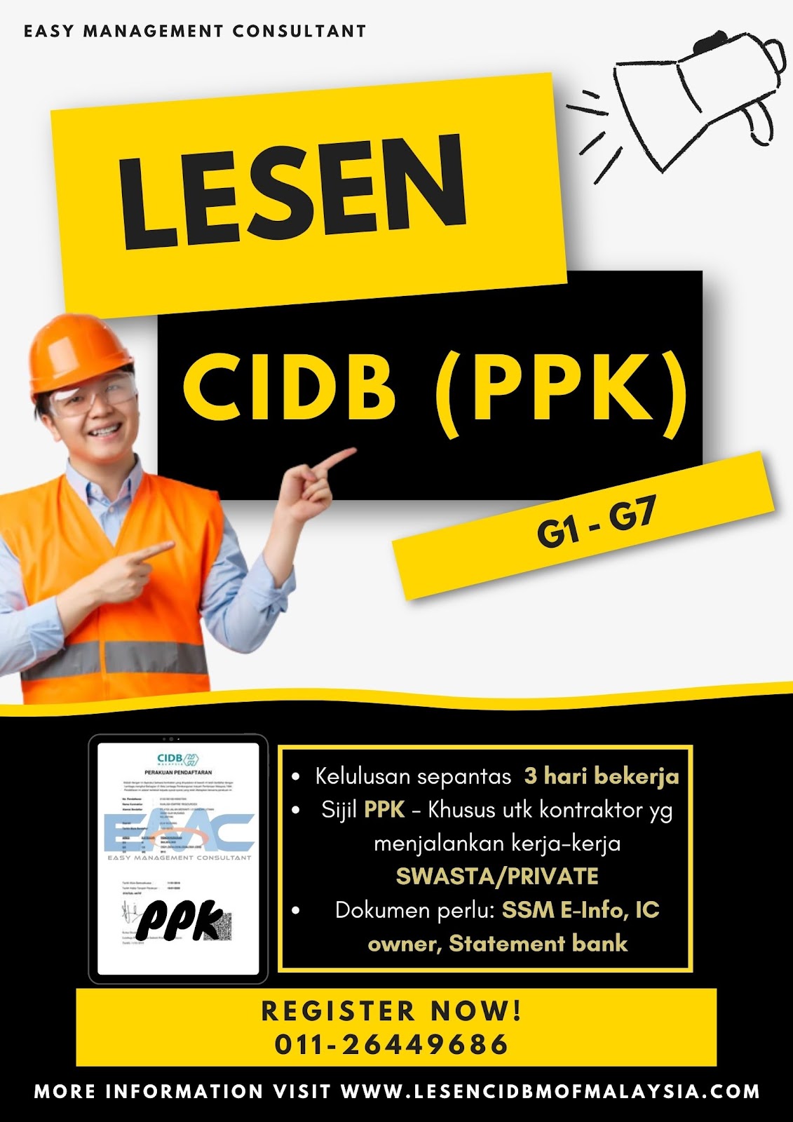 Sy dari syarikat konsultan EMC boleh bantu tuan/puan dptkan SIJIL KURSUS yg diwajibkan๐